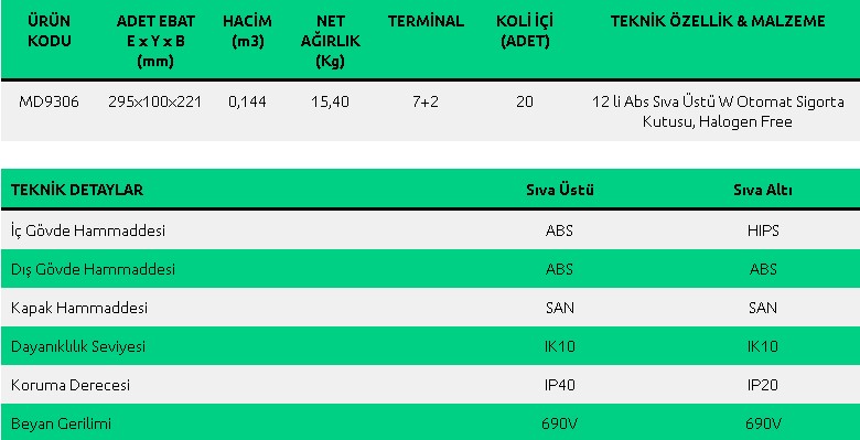 6 lı Abs Sıva Üstü W Otomat Sigorta Kutusu