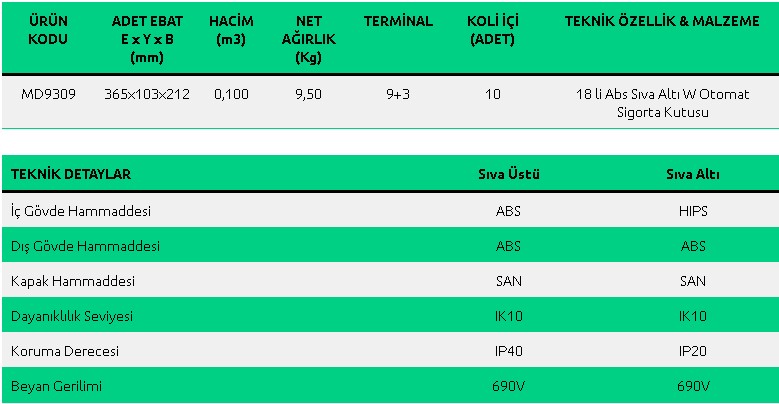 6 lı Abs Sıva Altı W Otomat Sigorta Kutusu
