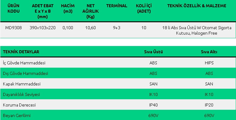 18 li Abs Sıva Altı W Otomat Sigorta Kutusu