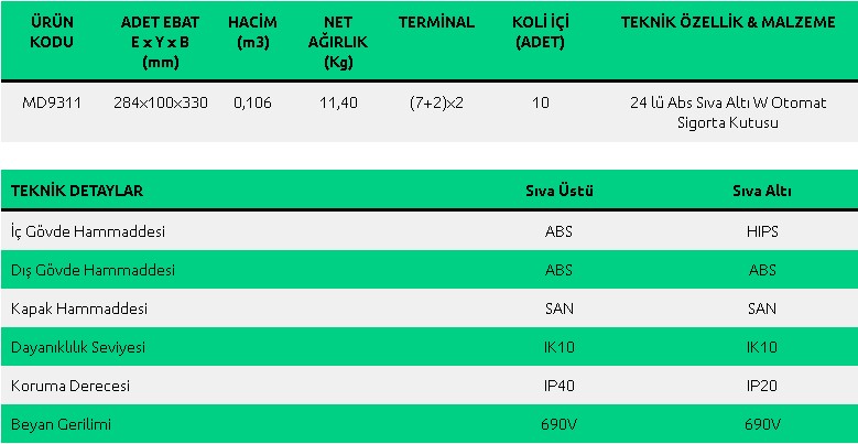 36 lı Abs Sıva Üstü W Otomat Sigorta Kutusu