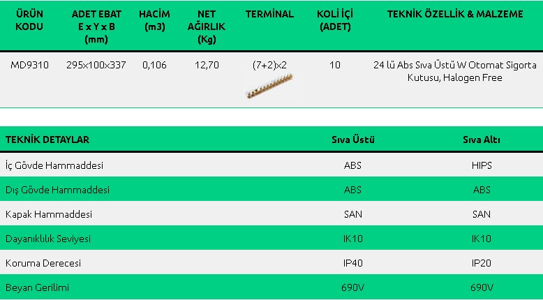 36 lı Abs Sıva Üstü W Otomat Sigorta Kutusu