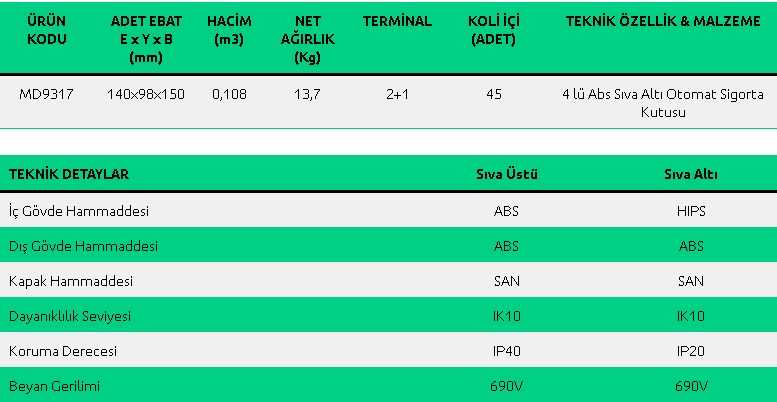 6 lı Abs Sıva Altı W Otomat Sigorta Kutusu