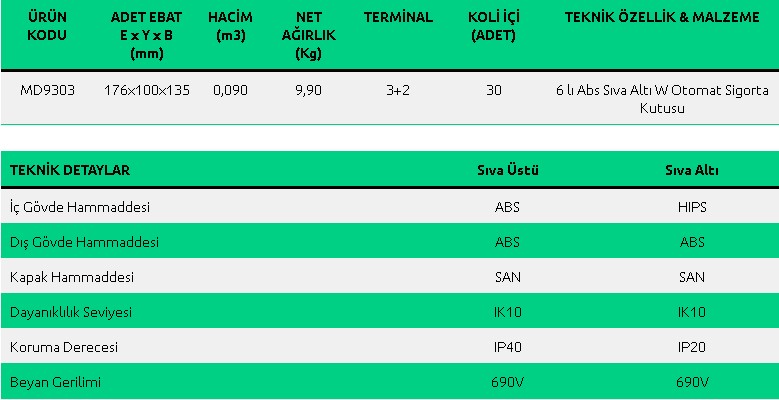 6 lı Abs Sıva Üstü W Otomat Sigorta Kutusu
