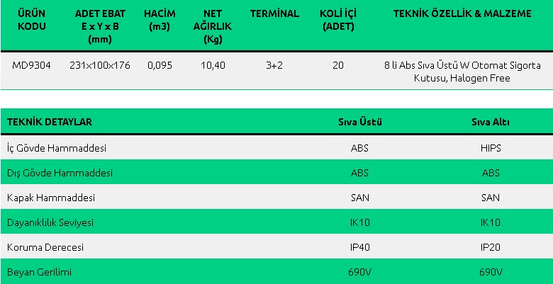 6 lı Abs Sıva Altı W Otomat Sigorta Kutusu