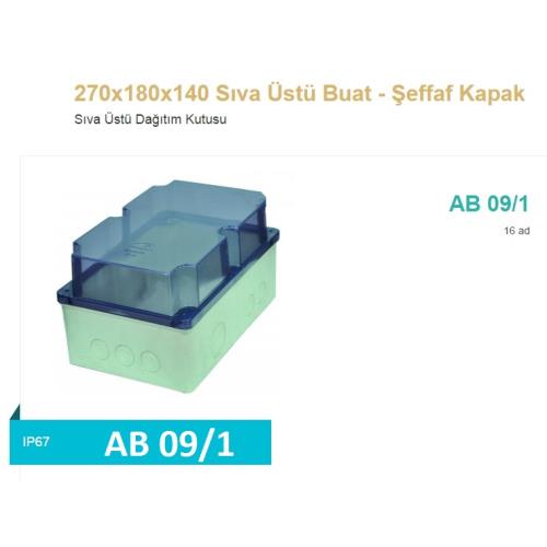 AB09_1 Sıva Üstü 270X180X140 Buat IP 67 Şeffaf Kapak