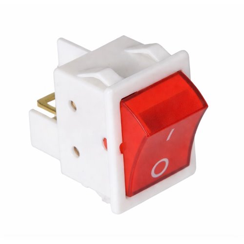 FAR F46 Geniş Işıklı Anahtar, genellikle grup prizlerde, pano kapaklarında veya çeşitli elektrikli cihazların üzerinde yer alan, durum göstergesi için dahili bir lambaya (genellikle neon veya LED) sahip olan rocker (beşik) tipi bir anahtardır.