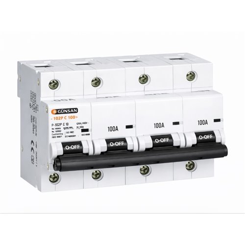Günsan 27 mm. Geniş Otomat 10kA C Tipi 4x100 Amper 4 Kutup